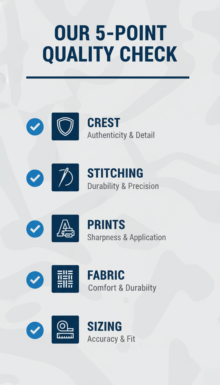 Knowing that a dedicated team has personally inspected your jersey for quality and accuracy means you can shop with absolute confidence. That's our promise.